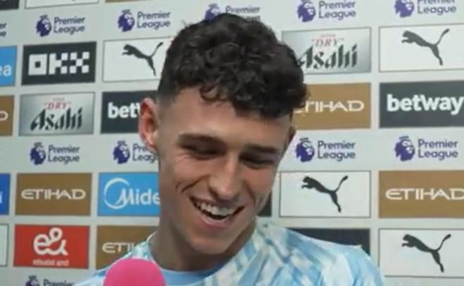 英超第8輪,曼城主場(chǎng)2-0埃弗頓,福登賽后接受了曼城官方采訪。